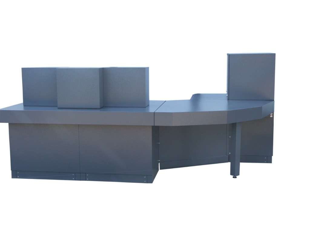 Steuerbedienfeld mit dem vorgesehenem Platz für Monitor, Tastatur und andere Schalt- oder Steuerelemente.